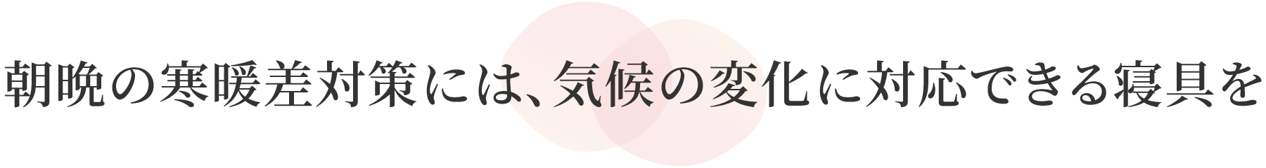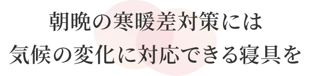 朝晩の気温差に左右されないよう、気候の変化に対応できる寝具で睡眠環境を見直してみて。