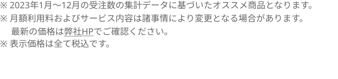 ※ 中途解約(返却)には当月分+2か月分の月額利用料と送料が発生いたします。