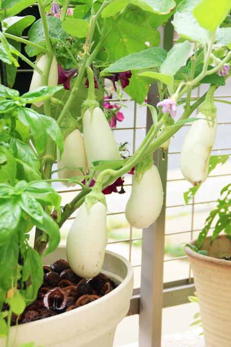 流通量の少ない「白ナス」も、家庭菜園なら手軽に作ることができます。