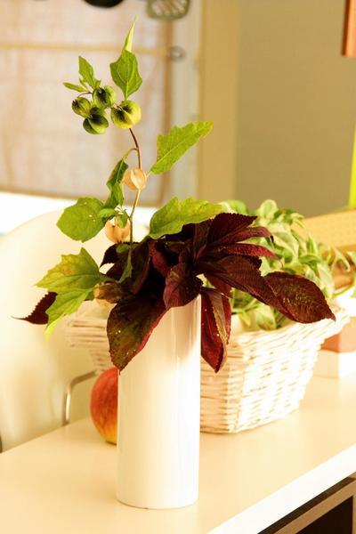 実つきの枝をカットして、コリウスと一緒に花瓶にさしました。