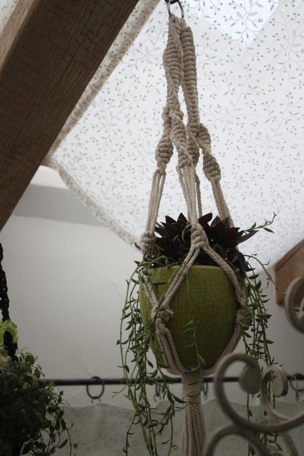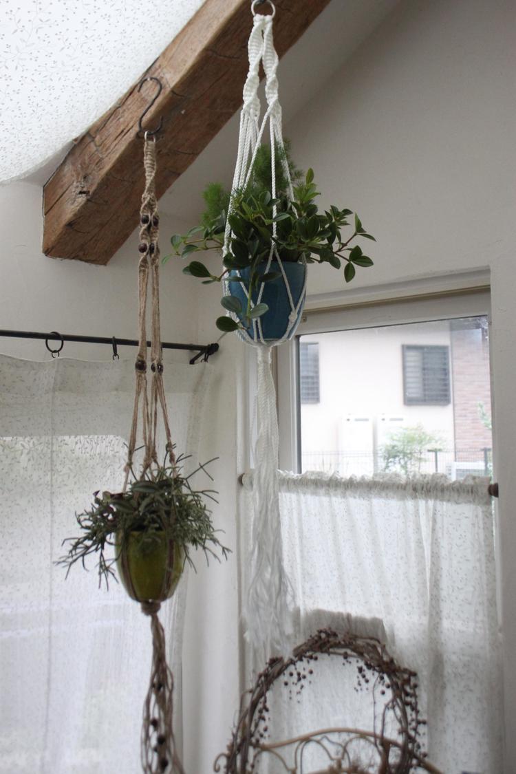 プランターはひび割れたように見える加工がかっこいいです!紐は編み方、結び方がそれぞれ異なります。