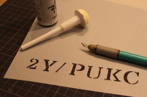 ステンシルペーパーに文字を書き、カッターでくり抜きます。![]()