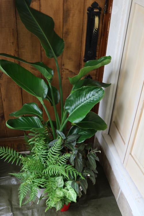 ストレリチアをプランターの中央、やや後方よりに配置します。
