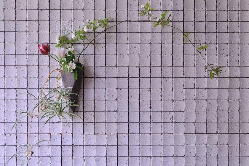 デザインが個性的な花器で、とても気に入っているもので、壁に掛けて使っています。