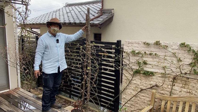 昨年5月から講師の一人として出演しております、園芸YouTubeチャンネル「ショクナナ」でも我が家のバラの開花の様子を今後、撮影してご覧いただこうとは思っておりますが、その開花の様子と、今年冬のつるバラ誘引の様子を比較していただくために、つるバラ誘引後の状態を動画で撮影していますので、今回はそちらをご紹介しておこうと思います。
