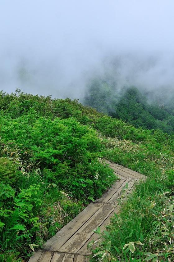 地蔵ケルンから地蔵沼へと向かう山岳道(木道)です。