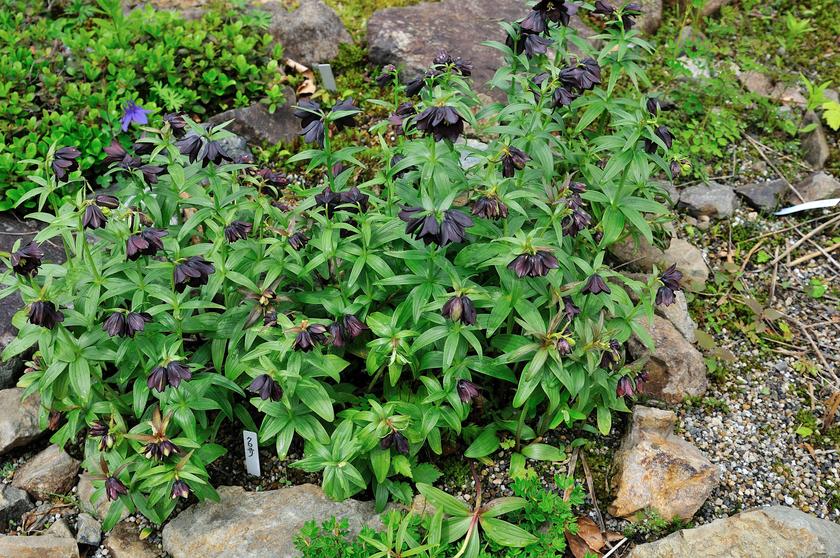 一見すると、黒花のクリスマスローズのように見えたのですが、これはクロユリの群生地です。