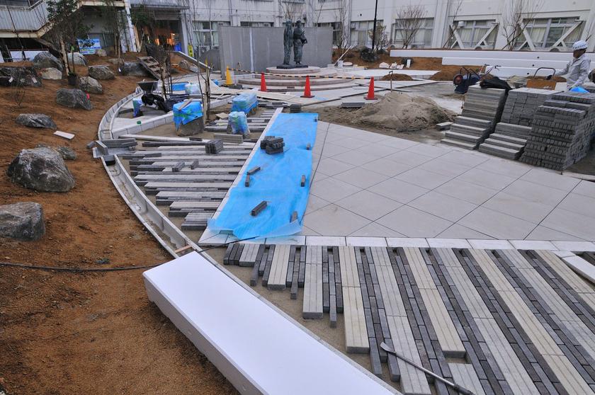 中央広場のタイル張り工事も完了し、タイルの表面も清掃され、キレイになりました。