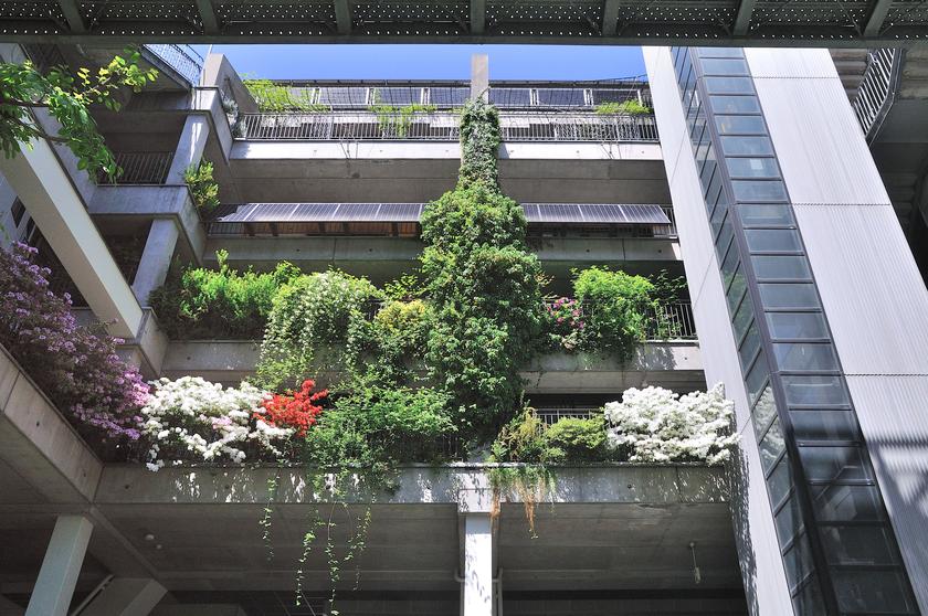 建物のいたる所が緑化された、他に類を見ないような都市空間となっています。
