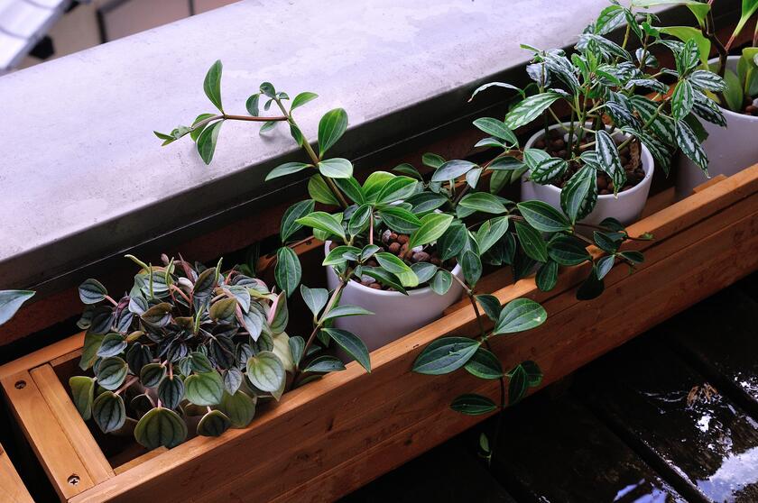ここに、先ほどと同様に、小さな鉢植えで育てているペペロミアなどの