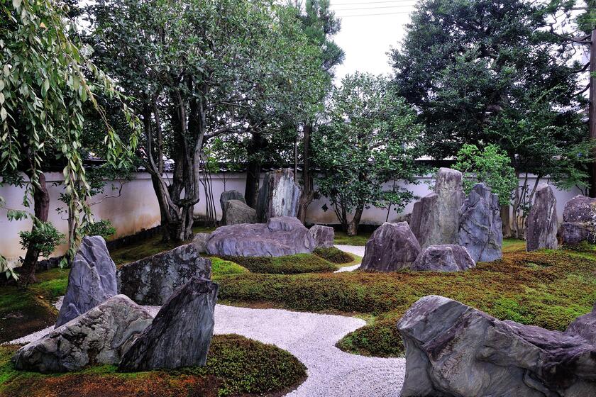 有名な竜安寺の枯山水庭園とはまた一味も二味も違う、昭和の偉大な作庭家・重森三玲氏のモダンな枯山水庭園。