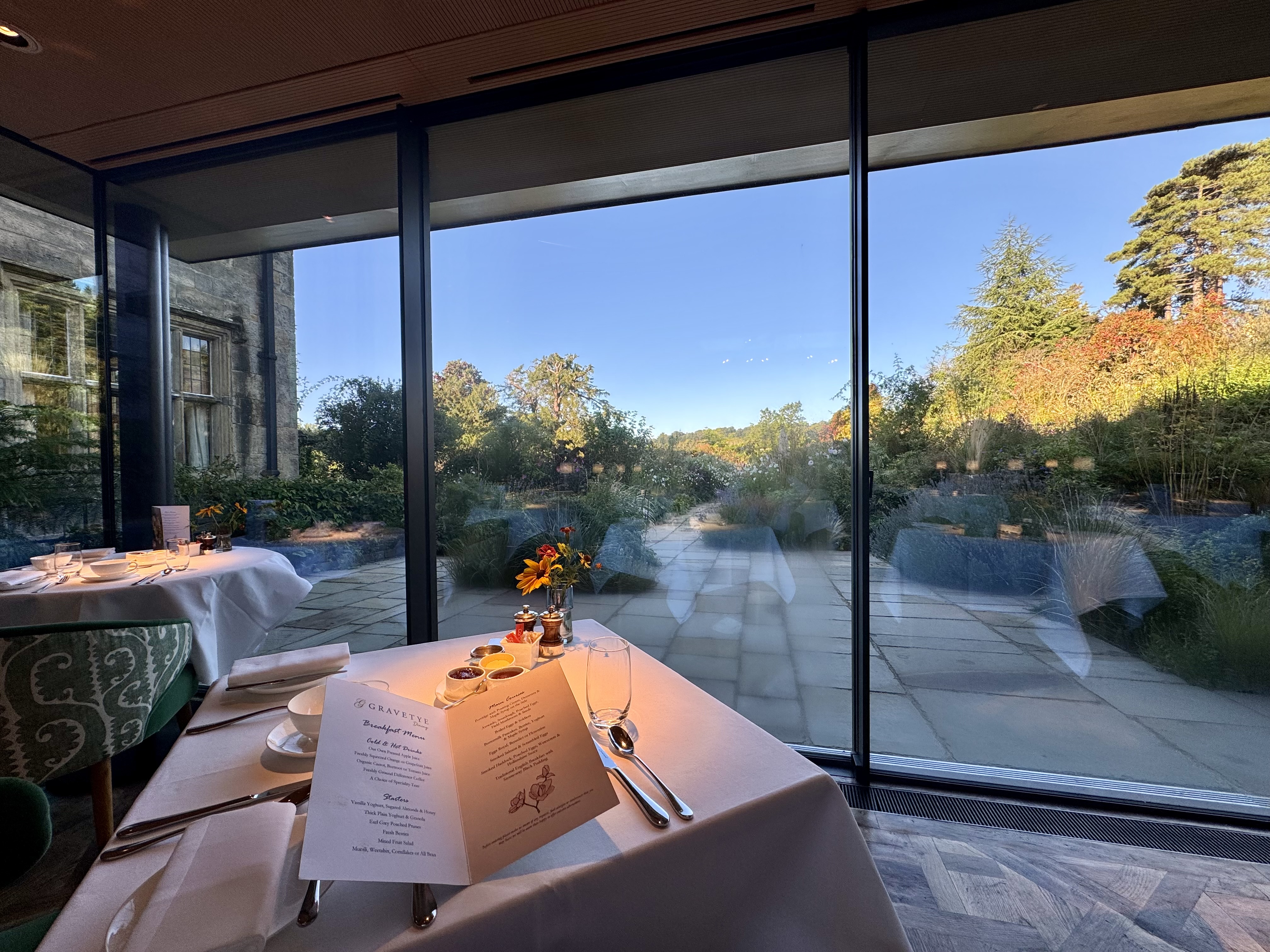 朝食。今度は窓際の席へ。イングリッシュブレックファーストのメニューも豊富でかなり悩みました。