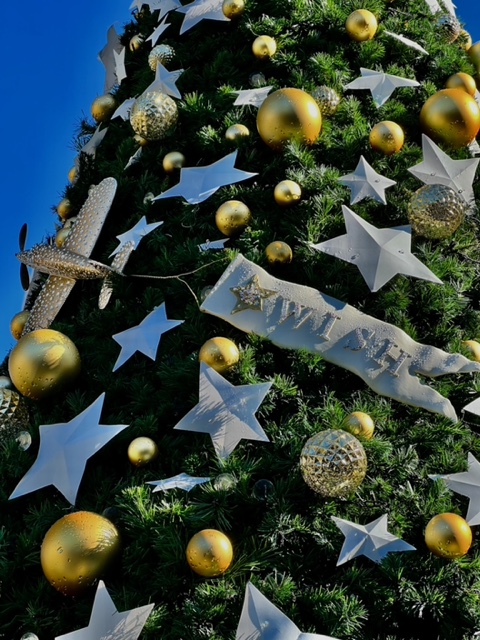 昼間にみても、絵になるツリーをと、反射性と、透過光の効果のあるものを探しました。