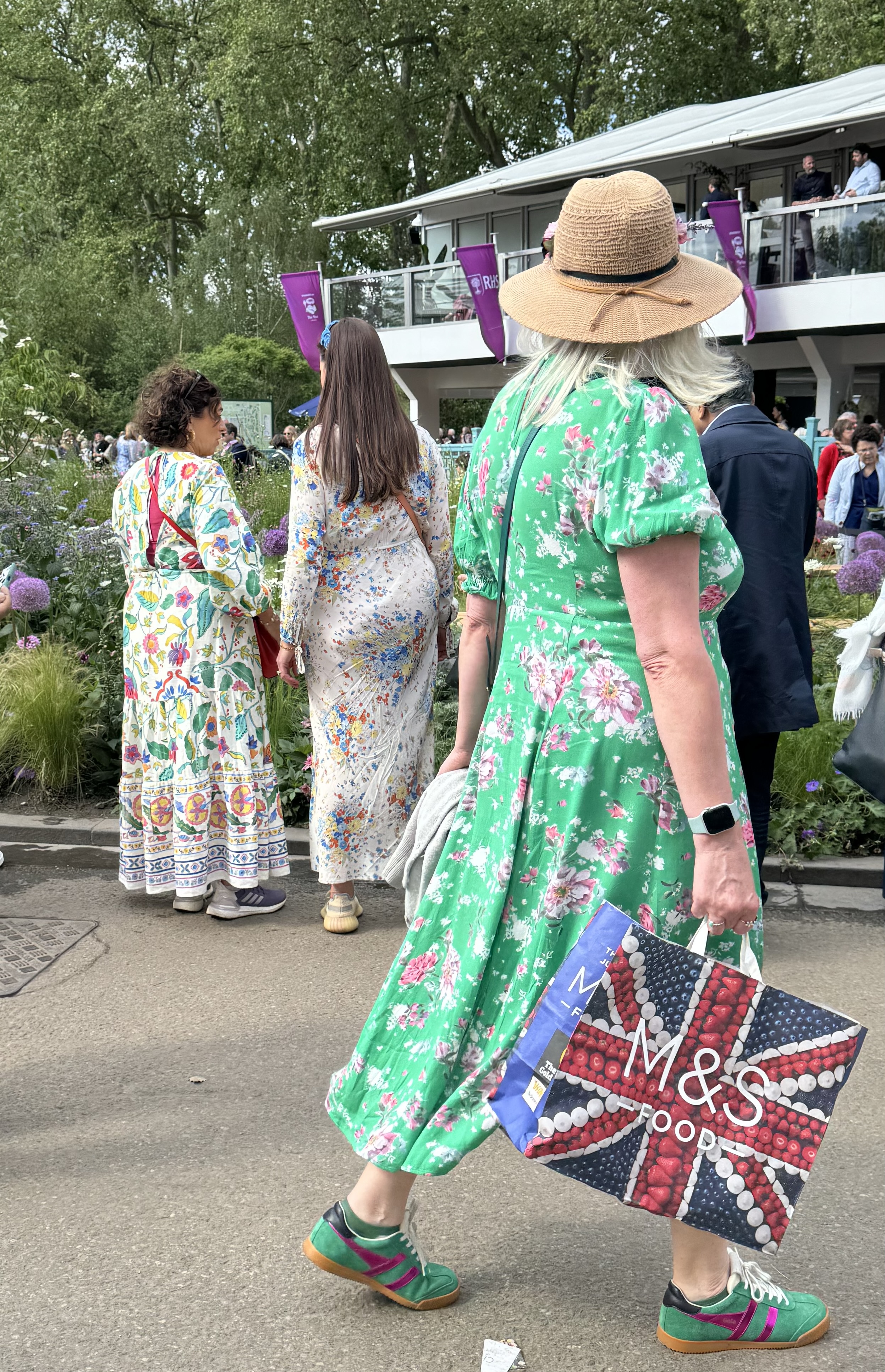 有名なチェルシードレスコードは、フラワーショーに合わせて華やかな花柄ワンピーで!