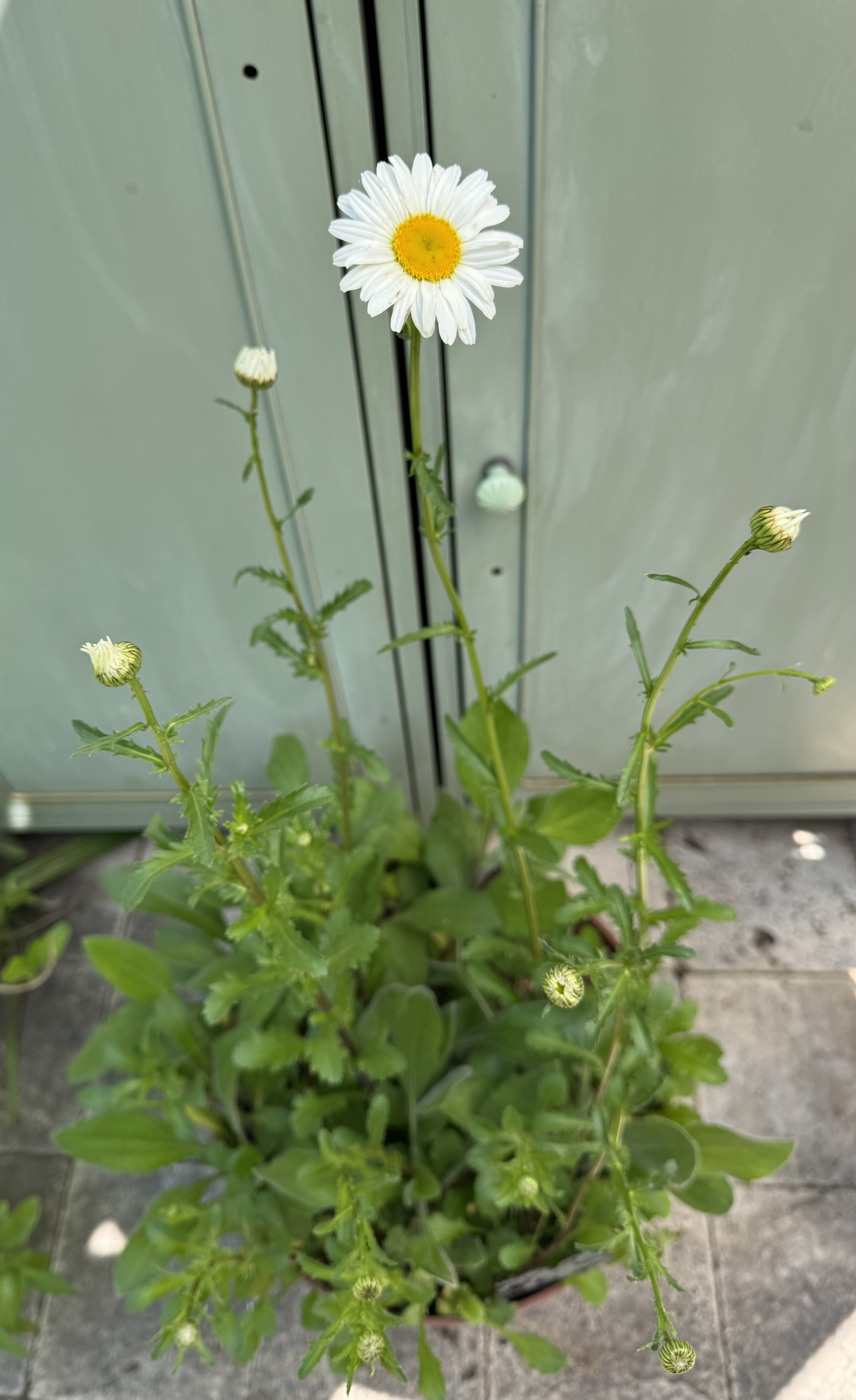 ↑は、2024年の春に種蒔きをしたメドウミックスから 宿根草として生き残ったシャスターデージーたちの本日。