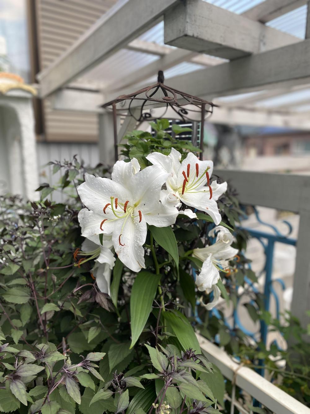 ガーデンキッチン横には毎年出てくるユリが咲いています。