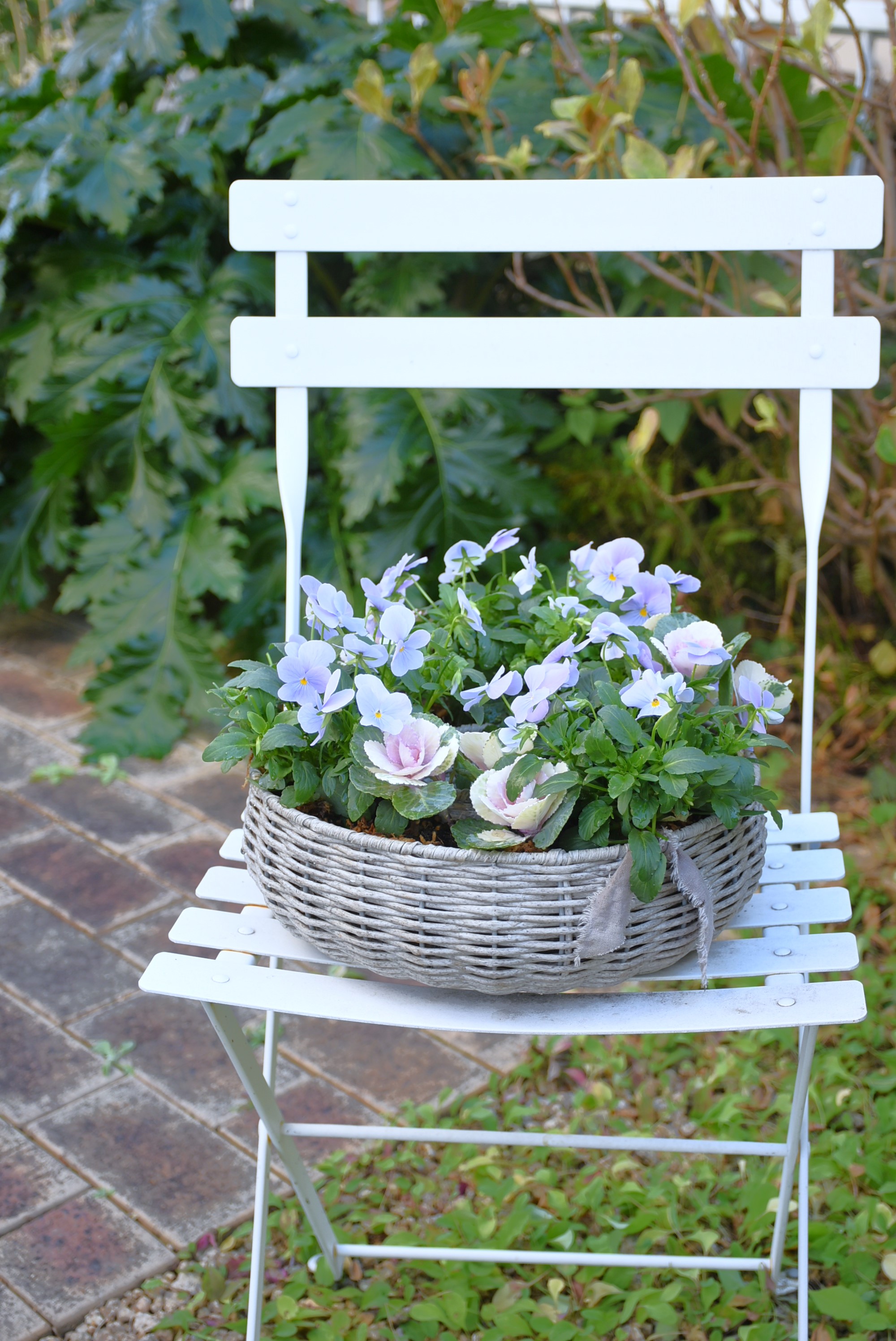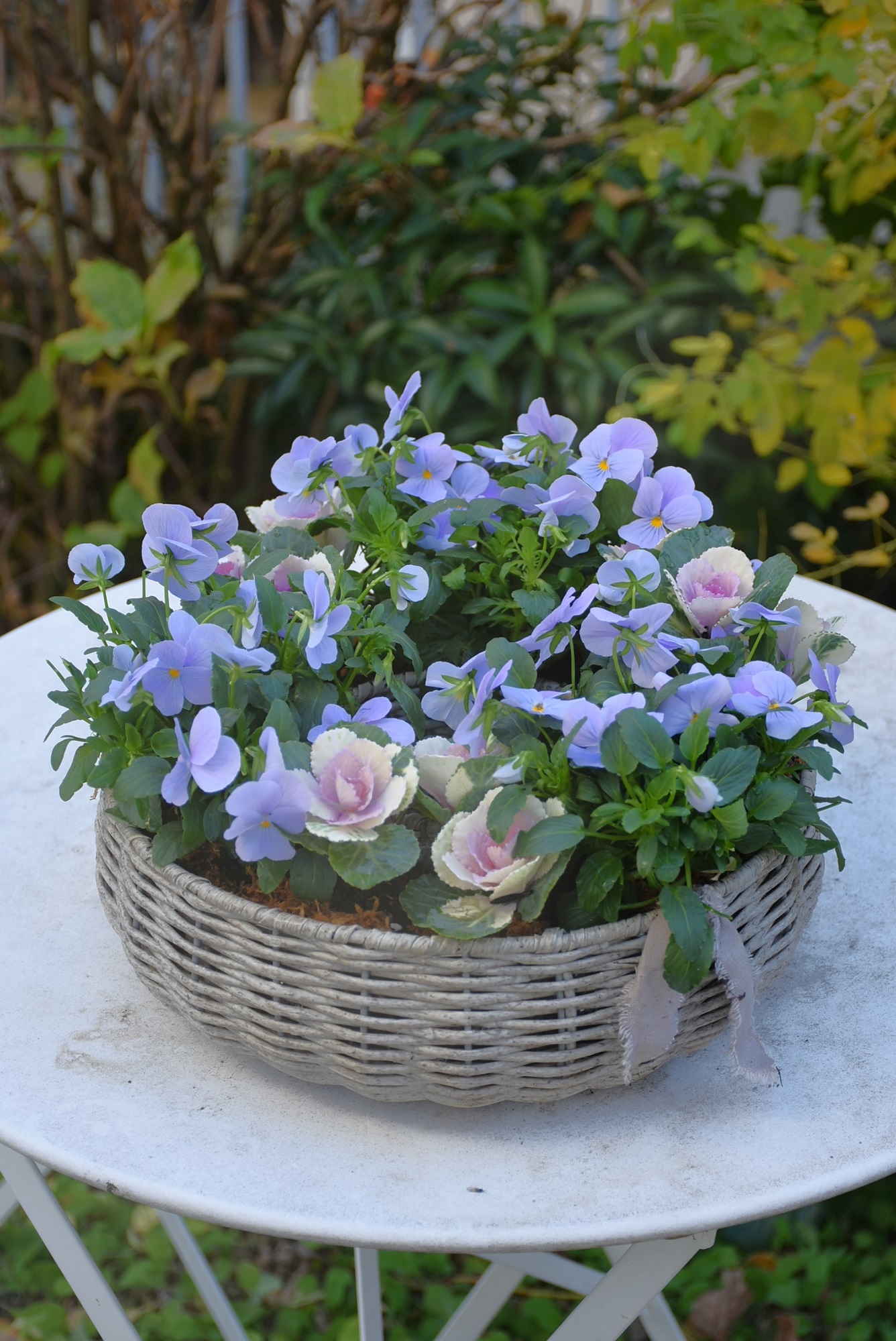 ビオラは私の大好きなビビ ヘブンリーブルーです。花付きの良いものを選ぶと植えた直後からふっくらと綺麗です。ハボタンは1ポットに小さなものが何本か植えてあるものが可愛いです。