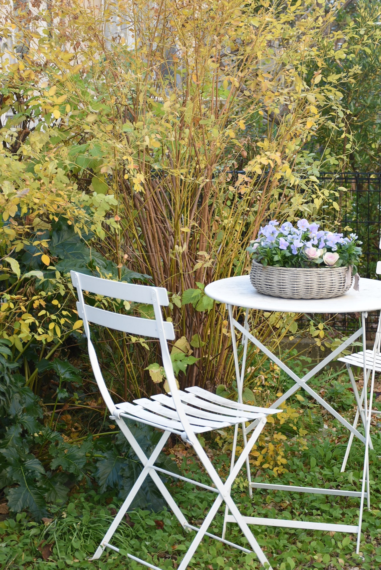 ドアなどに吊るすとミズゴケや苗が落ちてしまうことがありますので、ガーデンテーブルに置いたり、イスなどに立てかけて置くのがお勧めです。暖かな日には庭の黄色くなったハギの葉を眺めながら、お茶でも飲みたくなります。まだ一度も飲んだことないですけど(笑)