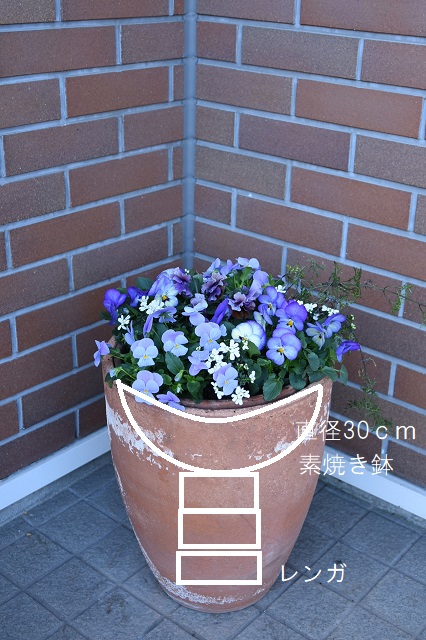 大きな鉢の中に直径30センチのボウルのような鉢を入れ込んでいます。下にはレンガをいくつか。こんな感じです。
