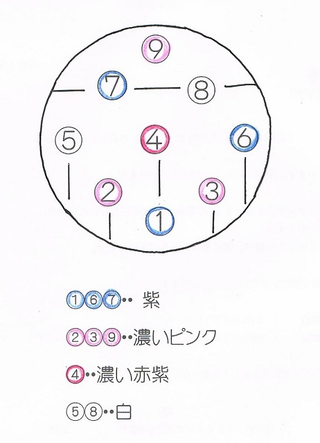 紫、白、濃いピンク、赤紫の色合わせです。